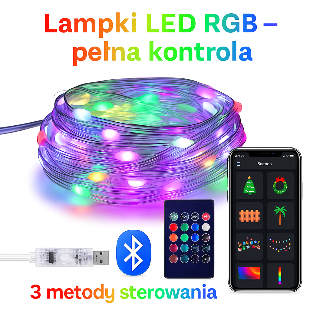 Dzięki płynnej zmianie kolorów RGB i setkom trybów efektów, możesz codziennie cieszyć się innym wyglądem choinki – eleganckim, klasycznym lub bajecznie kolorowym.